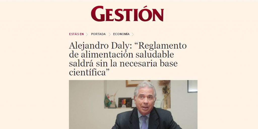 A raíz de la polémica sobre la implantación de un nuevo reglamento de alimentación saludable, nuestro Socio, Alejandro Daly, concedió una entrevista al diario Gestión para ofrecer su opinión.